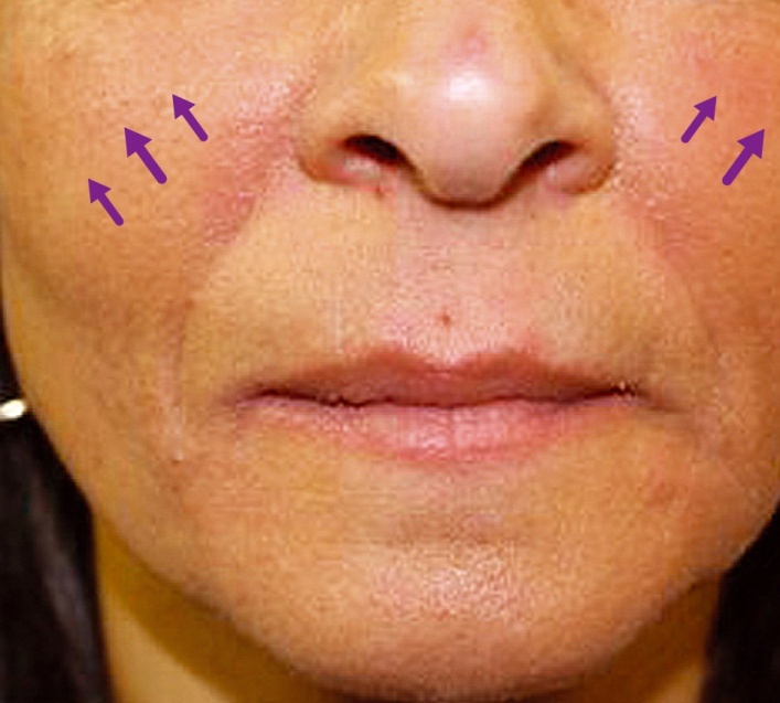 - Les acides hyaluroniques volumateurs injectés à l’aiguille ou à la canule. La correction peut se faire en une séance ou par étapes successives si le volume à apporter est important ou si plusieurs zones doivent être corrigées. L’aspect de « bonne mine » est immédiat.